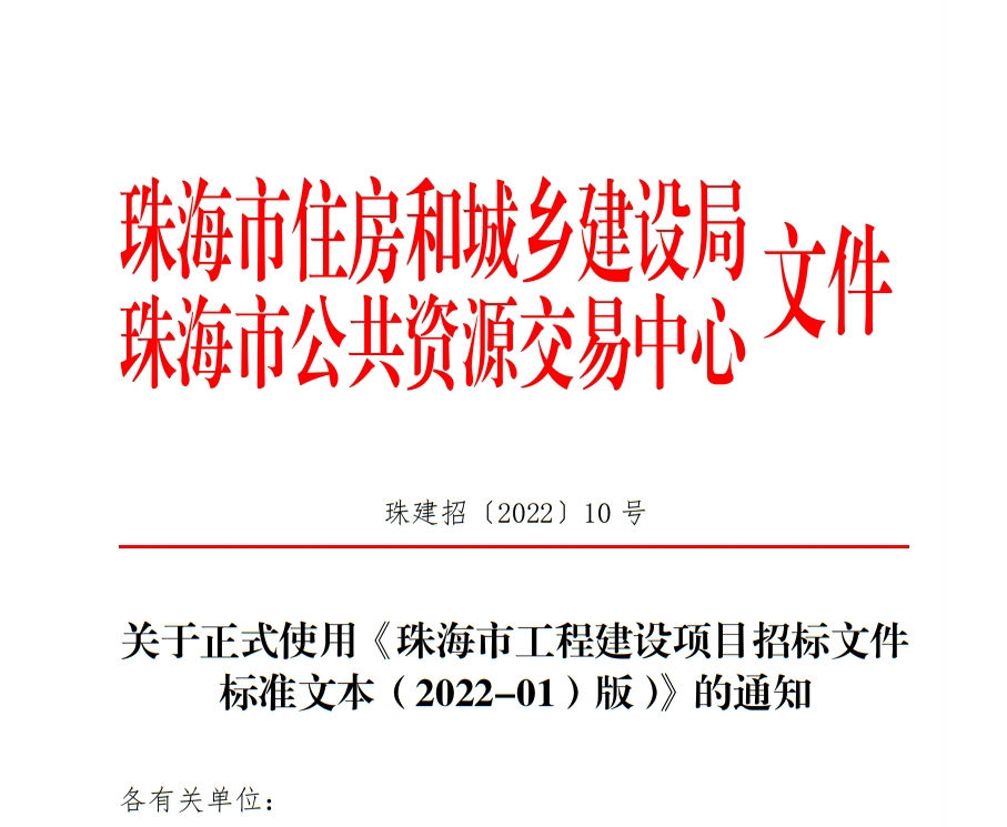• 關于正式使用《珠海市工程建設項目招標文件標準文本(2022-01)版)》的通知